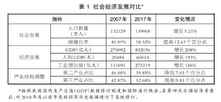 經(jīng)濟(jì)社會高速發(fā)展,產(chǎn)業(yè)結(jié)構(gòu)不斷優(yōu)化。兩次污染源普查之間的十年,也是中國經(jīng)濟(jì)飛速發(fā)展的十年。與“一污普”相比,“二污普”時(shí)期我國人口由132129萬人增至139008萬人,增加6879萬人,增長超過5%;城鎮(zhèn)化率由45.89%增至58.52%,提高近13個(gè)百分點(diǎn)。GDP由270092億元增至832036億元,增幅超過200%;人均GDP增幅也接近200%。第二產(chǎn)業(yè)占比由47%降至40%,降低7個(gè)百分點(diǎn);第三產(chǎn)業(yè)占比由43%增至53%,提高近10個(gè)百分點(diǎn)。十年間,我國社會經(jīng)濟(jì)和產(chǎn)業(yè)結(jié)構(gòu)均發(fā)生較大轉(zhuǎn)變,人口小幅增長的同時(shí)城鎮(zhèn)化率顯著提高,經(jīng)濟(jì)總量取得質(zhì)的飛躍、人均GDP大幅增長,第三產(chǎn)業(yè)規(guī)模和比重持續(xù)上升、產(chǎn)業(yè)結(jié)構(gòu)明顯優(yōu)化。