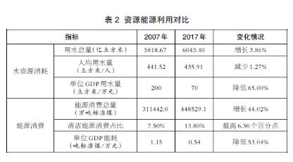 能源消費(fèi)總量持續(xù)上升,水資源節(jié)約和能源集約利用加強(qiáng),資源消耗強(qiáng)度不斷降低。與“一污普”相比,“二污普”時(shí)期我國用水量由5818.67億立方米增至6043.40億立方米,增長4%左右;人均用水量由441.52立方米/人降至435.91立方米/人,下降1%左右;單位GDP用水量也由200立方米/萬元降至70立方米/萬元,降幅達(dá)65%。能源消費(fèi)總量由311442萬噸標(biāo)準(zhǔn)煤增至448529萬噸標(biāo)準(zhǔn)煤,增長44%,其中清潔能源消費(fèi)占比提高超過6個(gè)百分點(diǎn);單位GDP能耗由1.15噸標(biāo)準(zhǔn)煤/萬元降至0.54噸標(biāo)準(zhǔn)煤/萬元,降幅超過50%??傮w看,雖然我國資源能源消耗總量較大、非清潔能源占比仍較高,但是利用效率不斷提高、結(jié)構(gòu)不斷向好。